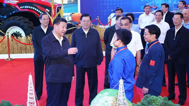 9月25日,黨和國家領(lǐng)導(dǎo)人習(xí)近平、李克強(qiáng)、張德江、俞正聲、劉云山、王岐山、張高麗等在北京展覽館參觀“砥礪奮進(jìn)的五年”大型成就展。