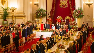 周二中午,習近平主席及其夫人在女王與菲利普親王的陪同下,乘坐皇家馬車到白金漢宮享用由女王主持的午宴。