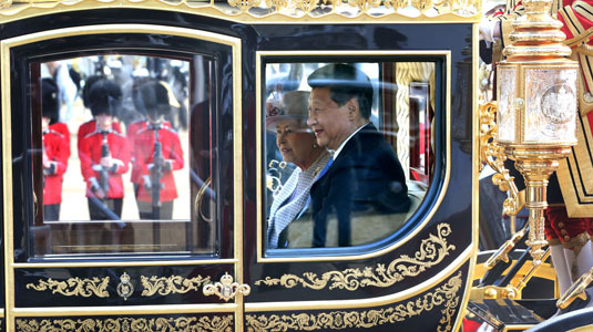 10月20日,對英國進行國事訪問的國家主席習近平出席了英國女王伊麗莎白二世在倫敦騎兵檢閱場舉行的隆重歡迎儀式。