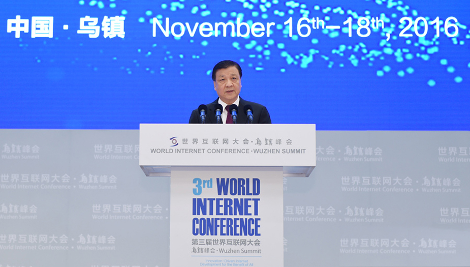 11月16日,中共中央政治局常委劉云山在浙江省烏鎮(zhèn)出席第三屆世界互聯(lián)網(wǎng)大會開幕式并發(fā)表致辭。