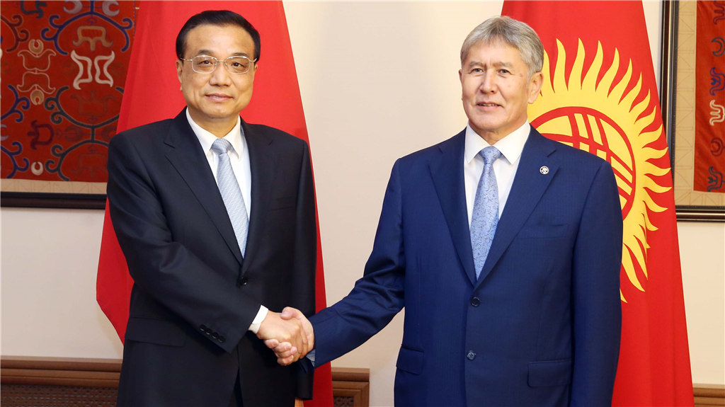李克強(qiáng)會(huì)見(jiàn)吉爾吉斯斯坦總統(tǒng)阿坦巴耶夫