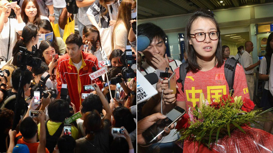 中國游泳隊抵達北京 傅園慧和寧澤濤被大批粉絲包圍