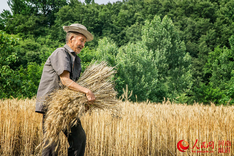 人民網(wǎng)鄭州6月5日電(宋芳鑫)俗話說:蠶老一時(shí),麥?zhǔn)煲簧巍{準(zhǔn)找欢ㄒ獡寱r(shí)機(jī),一旦誤了時(shí)機(jī),收成就會(huì)大打折扣。6月1日,在河南省平頂山魯山縣葉坪村,92歲的高大爺正忙著收割小麥。雖然已經(jīng)92歲高齡,但高大爺精神矍鑠,身板骨硬朗。割麥、碾場等農(nóng)活樣樣精通,是村里農(nóng)活上的“老把式”。
