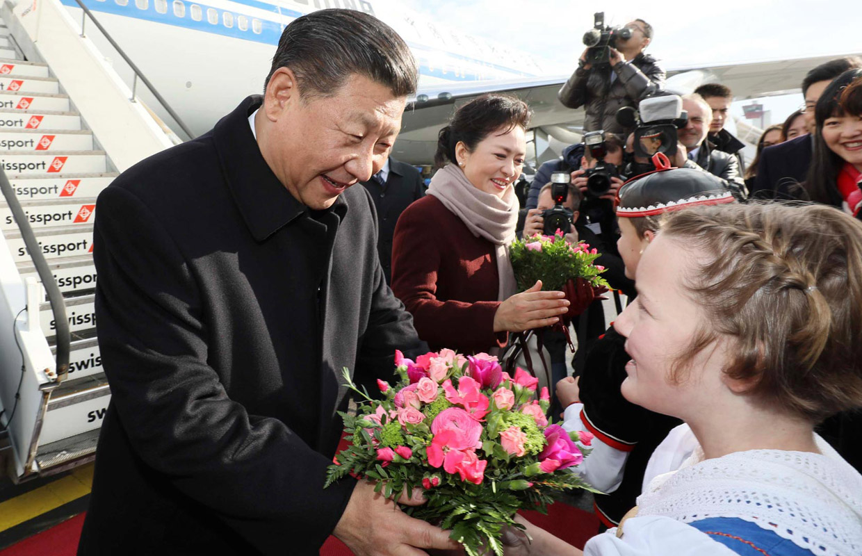 1月17日,國家主席習近平同瑞士聯(lián)邦主席洛伊特哈德在達沃斯共同啟動中瑞旅游年。兩國元首在熊貓冰雕像和印有中瑞兩國國旗及“中瑞旅游年”字樣的滑雪板旁合影留念。