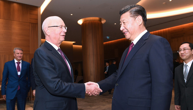 1月17日,國(guó)家主席習(xí)近平在瑞士達(dá)沃斯會(huì)見(jiàn)世界經(jīng)濟(jì)論壇主席施瓦布。