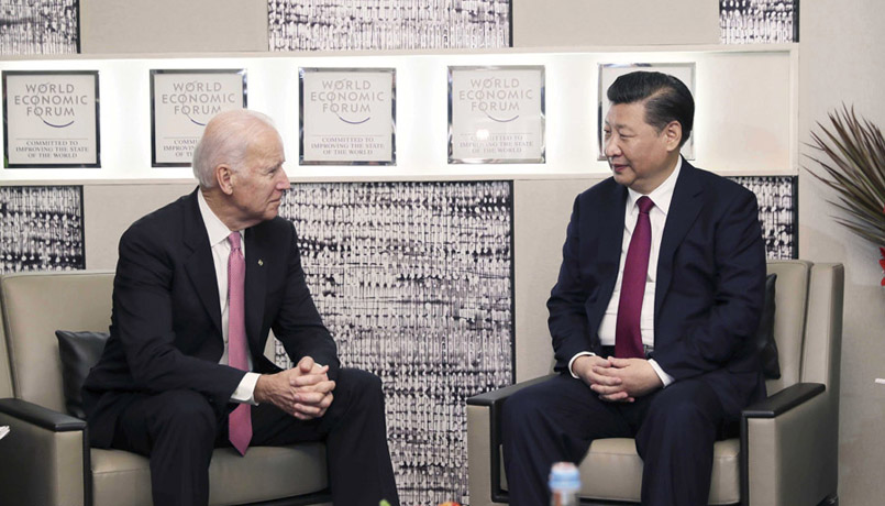 1月17日,國(guó)家主席習(xí)近平在瑞士達(dá)沃斯會(huì)見(jiàn)美國(guó)副總統(tǒng)拜登。