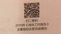 今年政府工作報告的首頁右上角,首次出現了一個二維碼,掃碼后能看到一個時長為2分50秒的動畫視頻和一張制圖,用32組數據來說明2016年政府工作報告主要指標任務完成情況。