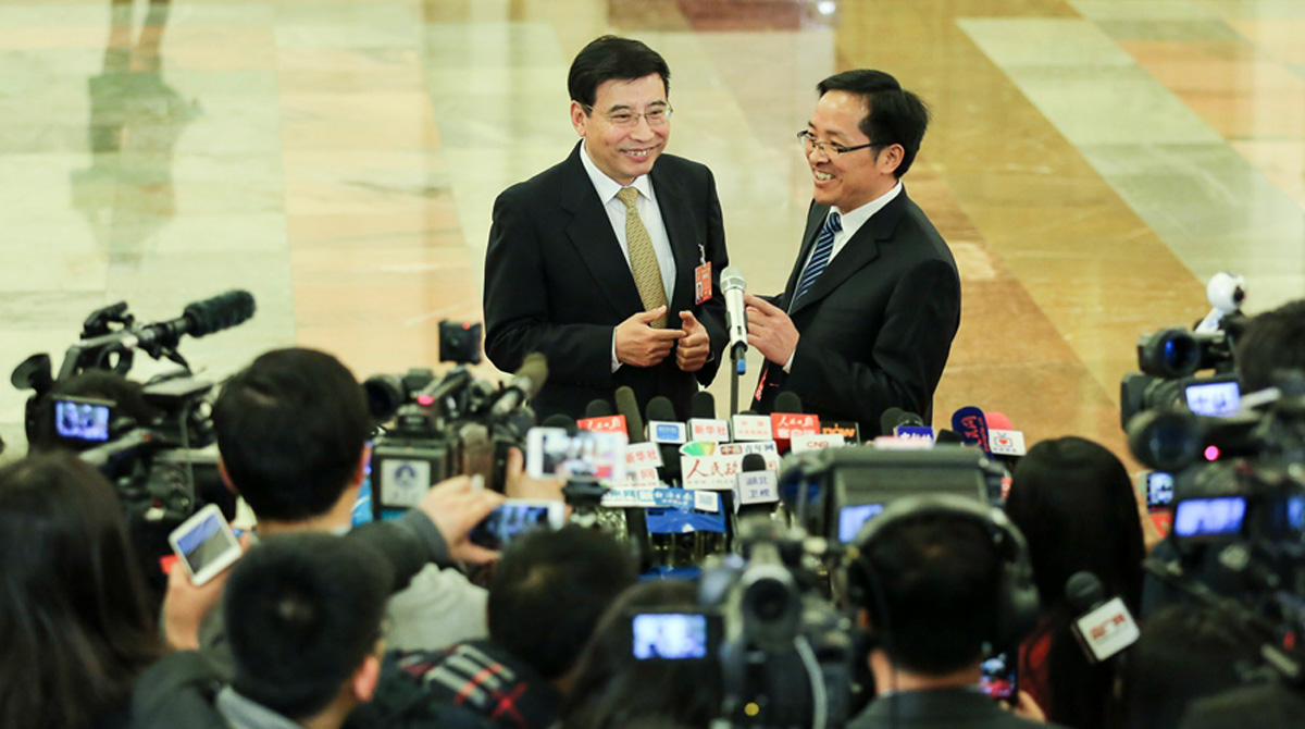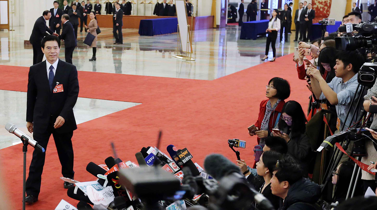 在北京人民大會堂北大廳,今年全國兩會開通的“部長通道”,吸引了眾多中外媒體的高度關注。