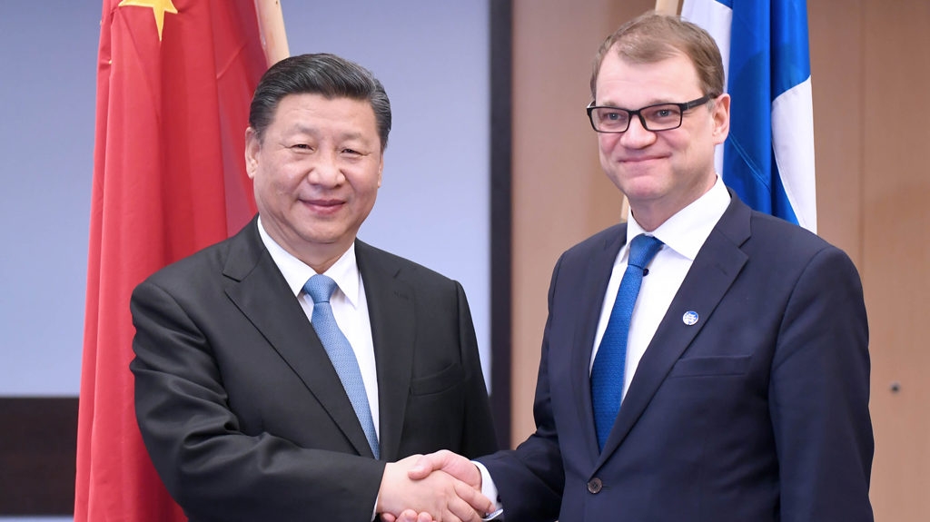 4月5日,國家主席習近平在赫爾辛基會見芬蘭總理西比萊。
