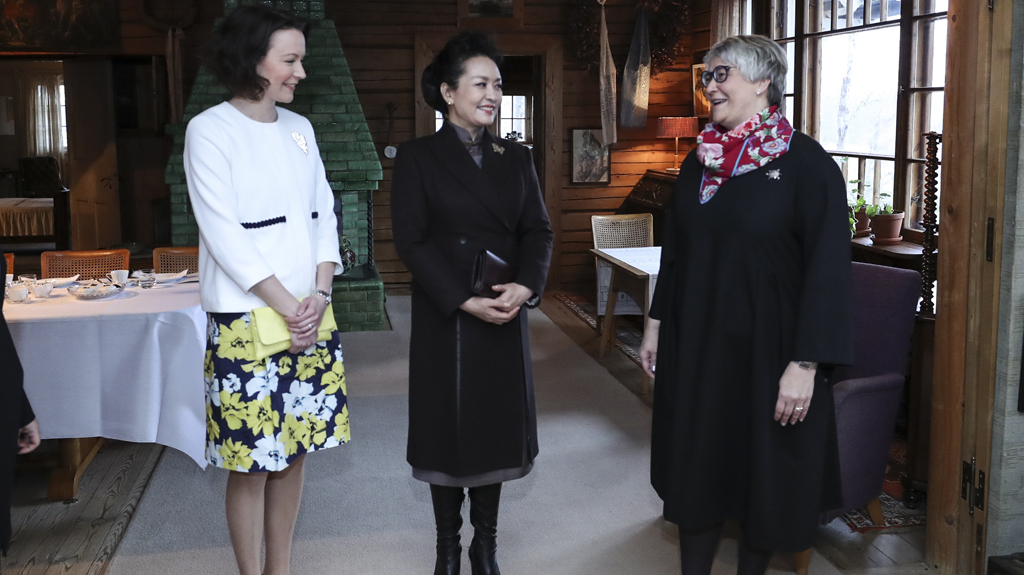 當地時間4月5日上午,國家主席習近平夫人彭麗媛參觀位于赫爾辛基以北圖蘇拉湖畔的西貝柳斯故居博物館。
