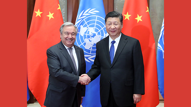 4月8日,國家主席習近平在北京人民大會堂會見聯合國秘書長古特雷斯。新華社記者 劉衛兵 攝