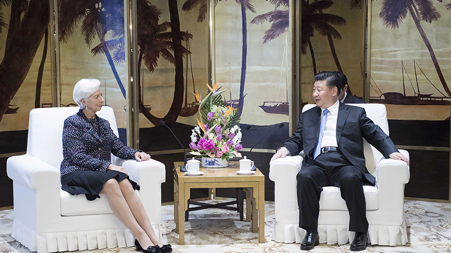 4月10日,國家主席習近平在海南省博鰲國賓館會見國際貨幣基金組織總裁拉加德。新華社記者 李濤 攝  4月10日,國家主席習近平在海南省博鰲國賓館會見國際貨幣基金組織總裁拉加德。