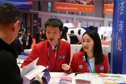 2018年11月7日,進博會現(xiàn)場,志愿者志愿者為觀眾解答問題。正在上海舉行的首屆中國國際進口博覽會總計招募志愿者超過5400人,他們參與進博會籌備工作和場館內(nèi)外的各項服務(wù)保障,為進博會順利舉行和觀眾省心參觀作出貢獻(xiàn)。