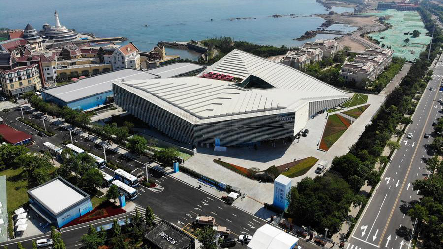 這是位于青島市嶗山區(qū)東海路上的上海合作組織青島峰會新聞中心(6月3日無人機拍攝)。據(jù)介紹,新聞中心總建筑面積約3.5萬平方米,設立取證中心、咨詢臺、公共工作區(qū)、新聞發(fā)布廳、會議采訪、通信保障等29個工作小組,職能涵蓋媒體接待、采訪、通信、交通、醫(yī)療、安全等全方位保障。