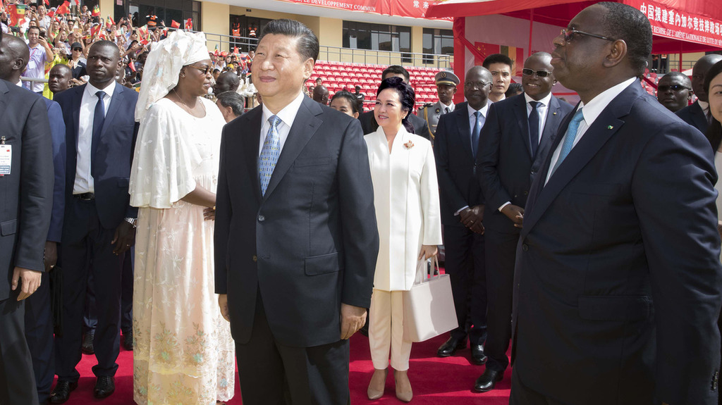 習近平同塞內加爾總統薩勒共同出席塞內加爾競技摔跤場項目移交儀式