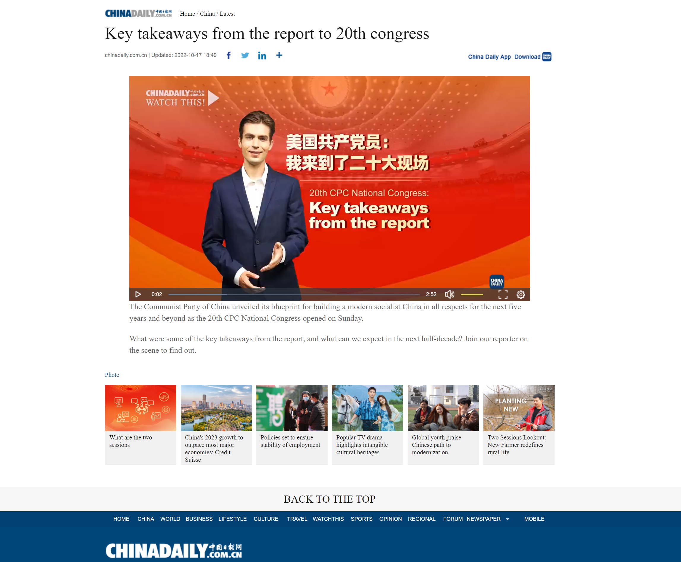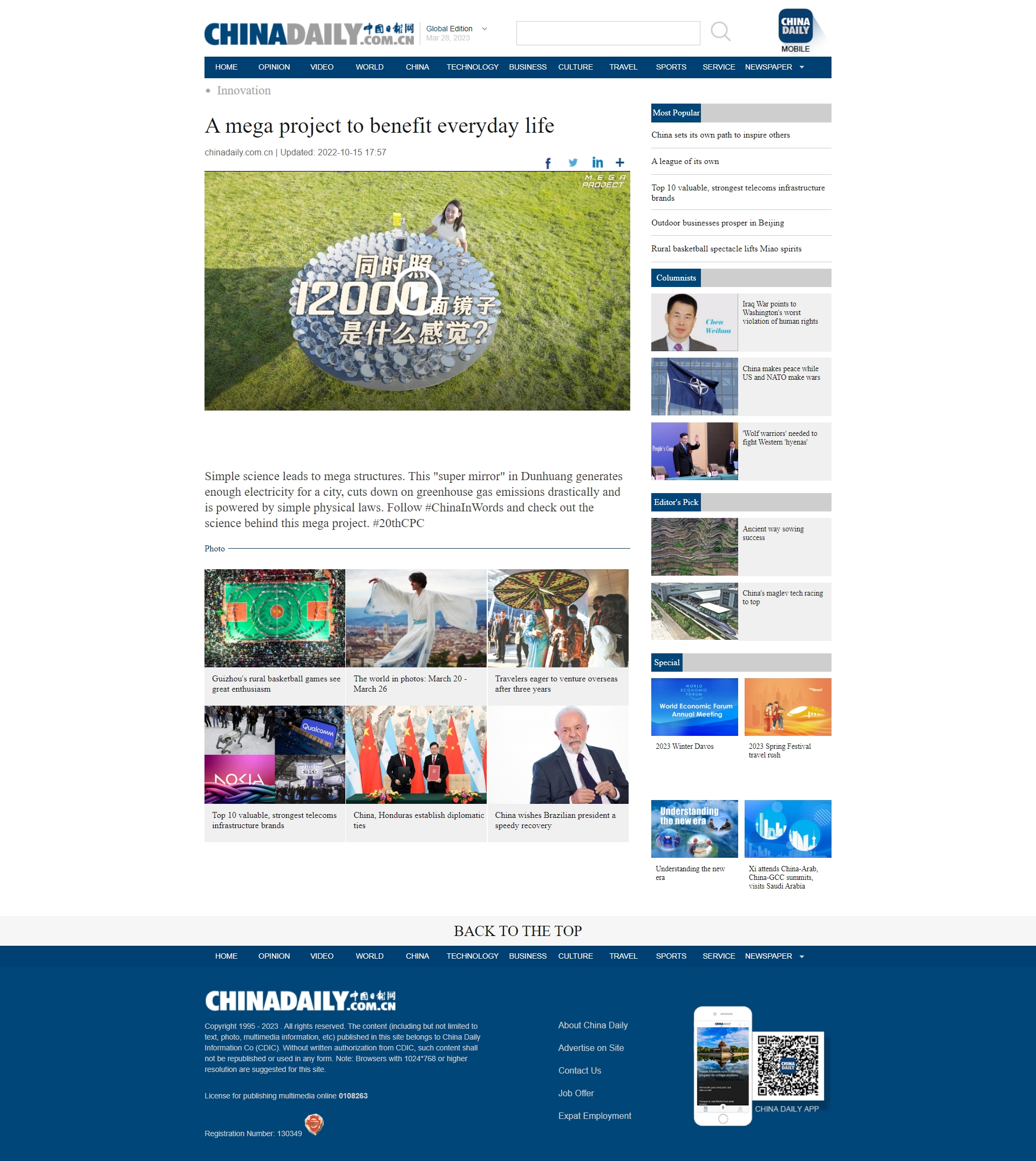 根據(jù)中國記協(xié)《中國新聞獎評選辦法》和中國記協(xié)新媒體專業(yè)委員會《關(guān)于開展第33屆中國新聞獎融合報道、應(yīng)用創(chuàng)新和新媒體新聞專欄作品專項初評工作的通知》相關(guān)要求,現(xiàn)對中國日報社報送的5件參評作品進(jìn)行公示,歡迎監(jiān)督、評議。公示期為2023年3月28日至4月3日。如有不同意見,可通過電話或電子郵件等方式發(fā)表評議意見,逾期不再受理。