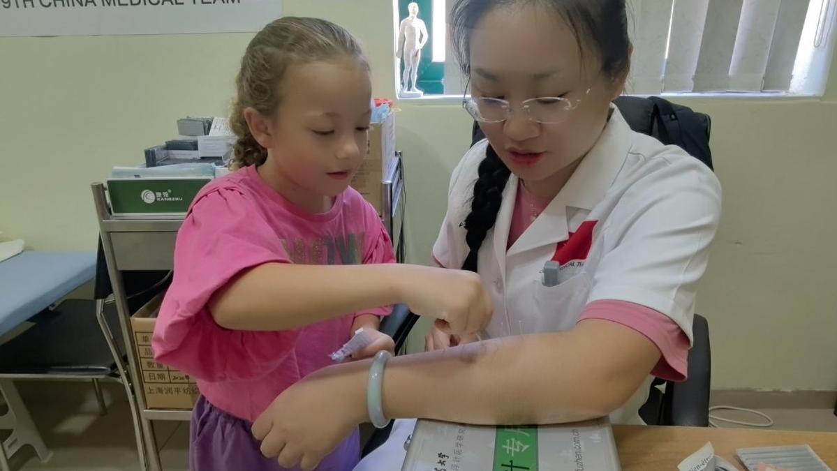 想到在家經常教授自己孩子針灸,高友玲在取針前,試探著問瑟琳娜:“你今天表現這么好,我想獎勵你,教你拔針好不好?”瑟琳娜羞怯地回答:“我有點害怕!”媽媽納丁聽到這個提議很是開心,不但欣然接受,還主動配合高友玲一起鼓勵瑟琳娜。于是在高友玲的指導和監督下,小小的瑟琳娜勇敢又順暢地拔出了一根根針,母女倆成就感爆棚,興奮不已,納丁還拍下了女兒首次拔針的珍貴視頻。從那以后,每次納丁過來針灸,瑟琳娜都會積極要求陪同,從家到中醫中心45分鐘的車程常常讓小姑娘昏昏欲睡,但只要一下車,小姑娘就立刻活力滿滿,因為又可以跟著高友玲學習拔針了。