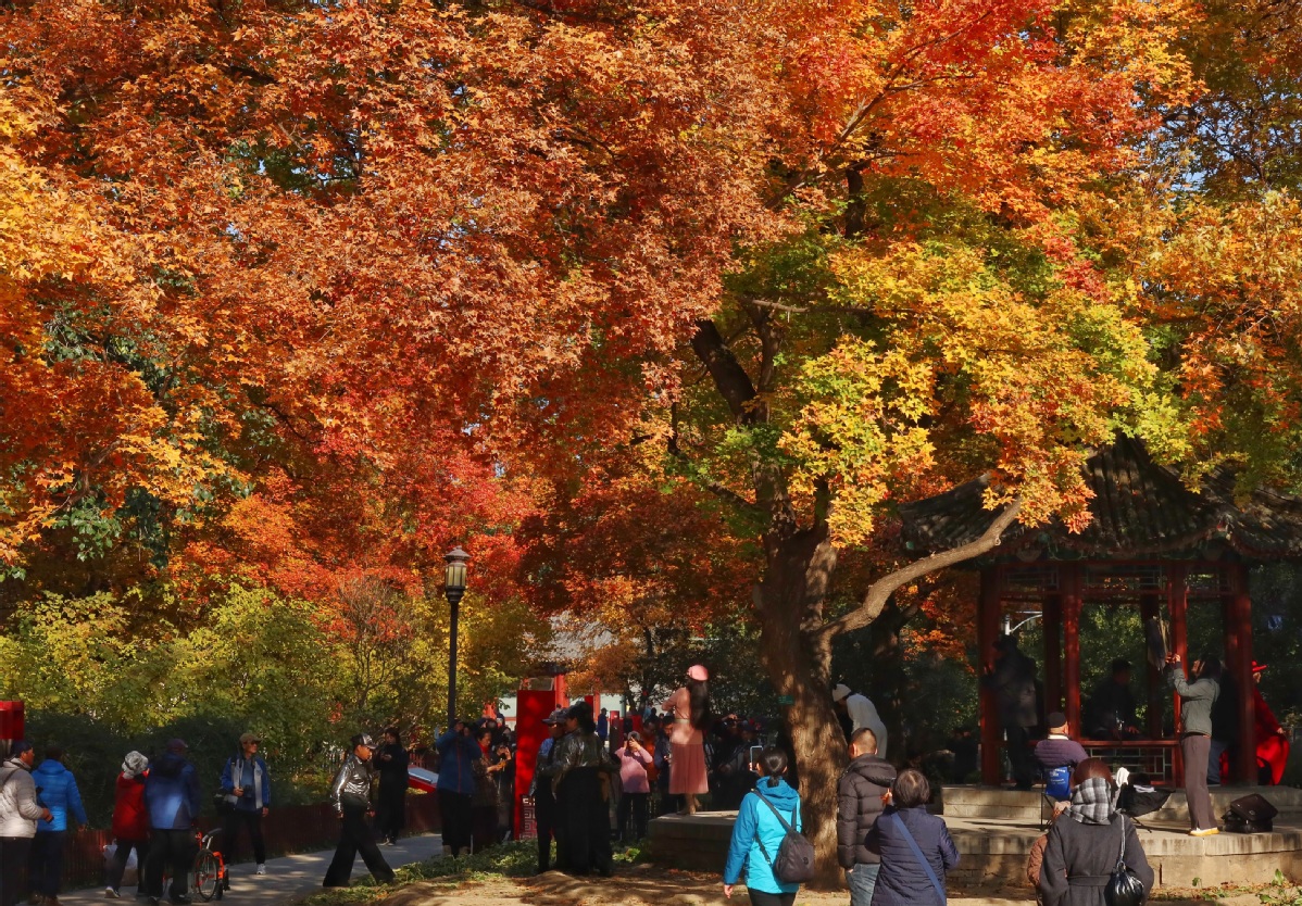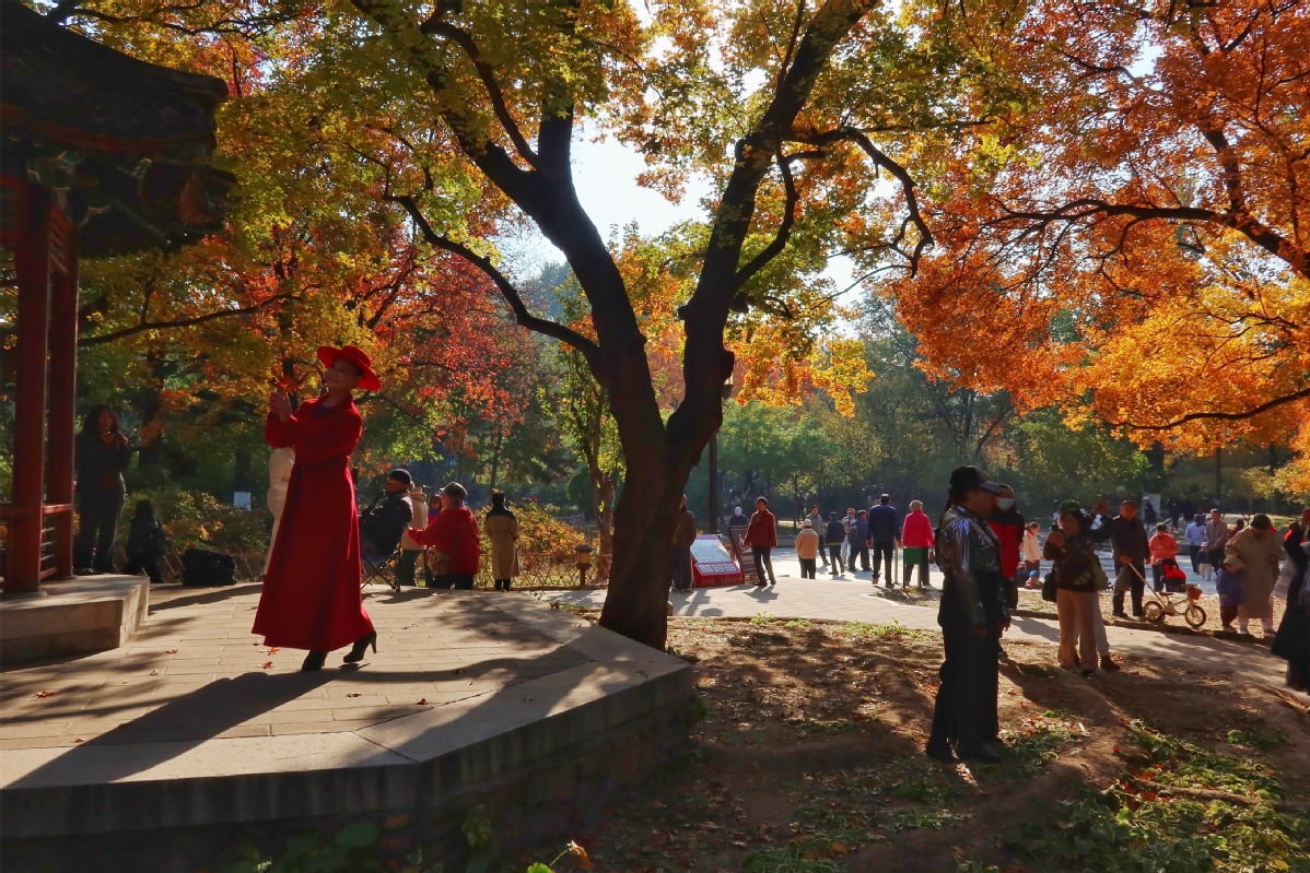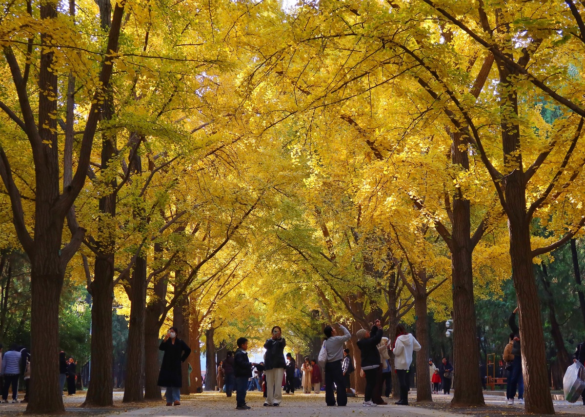 中國日報11月4日電(記者 姜東)2025年11月4日,北京地壇公園銀杏大道游人如織。暮秋時節,地壇公園內的各種植物色彩斑斕,吸引人們前來拍照打卡留念,擁抱美好秋色。