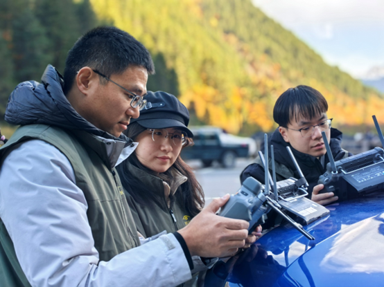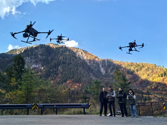 此次科考活動投入多套多旋翼無人機(jī)和多類型載荷,圍繞九寨溝世界自然遺產(chǎn)地植被生態(tài)景觀變化、滑坡與崩塌地質(zhì)災(zāi)害治理成效及基礎(chǔ)設(shè)施韌性能力建設(shè)等方面,在遺產(chǎn)地多區(qū)域?qū)嵤┒鄼C(jī)協(xié)作飛行外業(yè)數(shù)據(jù)采集,開展無人機(jī)遙感綜合監(jiān)測和衛(wèi)星遙感解析結(jié)果的野外驗(yàn)證,并對九寨溝管理局相關(guān)部門人員開展技術(shù)培訓(xùn)。