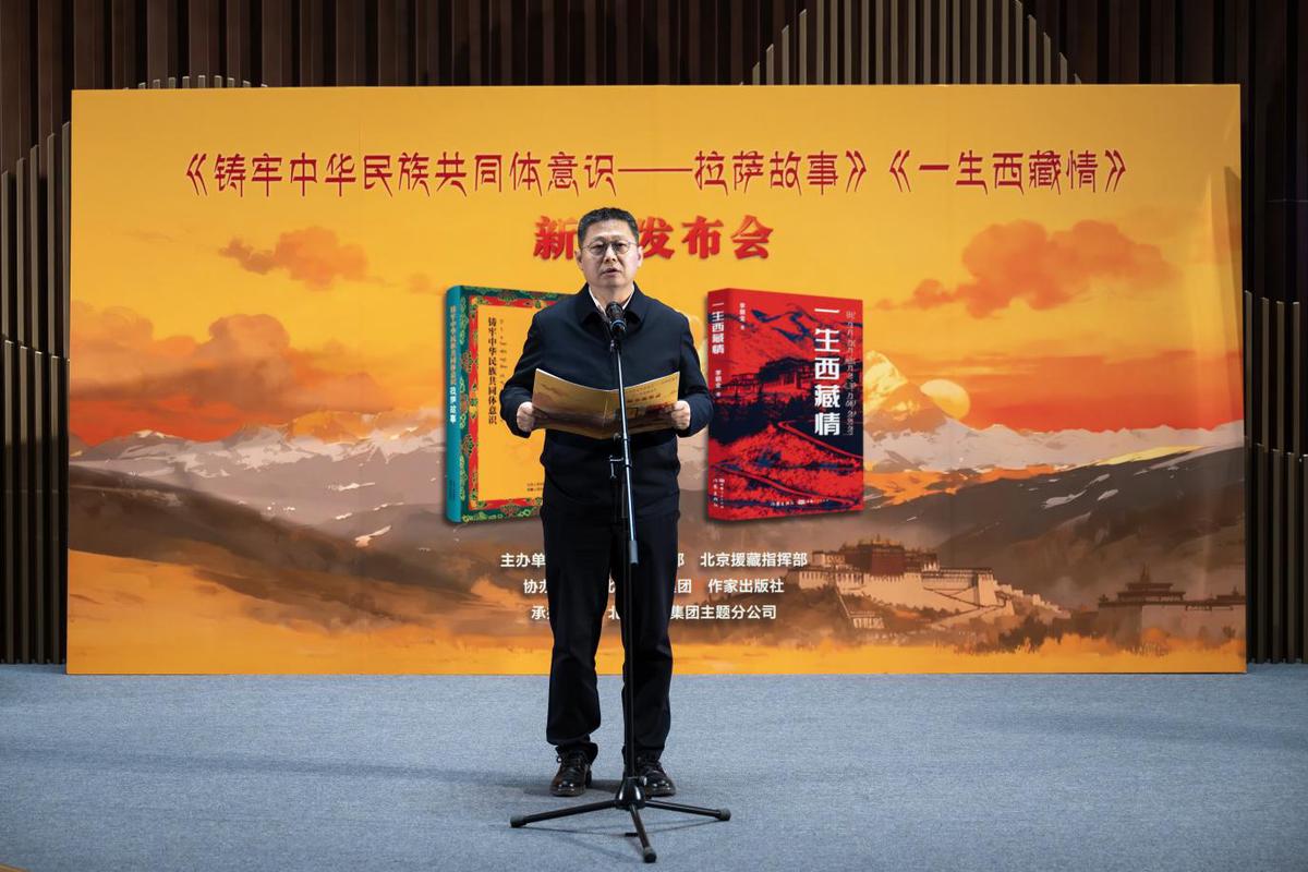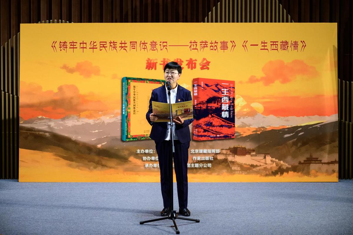 11月12日下午,由拉薩市委宣傳部、北京援藏指揮部主辦的《鑄牢中華民族共同體意識——拉薩故事》《一生西藏情》新書發布會在北京藝術中心隆重舉行。拉薩市委常委、宣傳部部長王慧,首都文化科技集團副總經理,北京出版集團黨委書記、董事長周浩出席活動并致辭。中國藏學研究中心歷史研究所原所長、二級研究員張云,北京老舍文學院常務副院長、北京作協副主席周敏以及北京各單位援藏干部代表、北京出版集團代表參加活動。