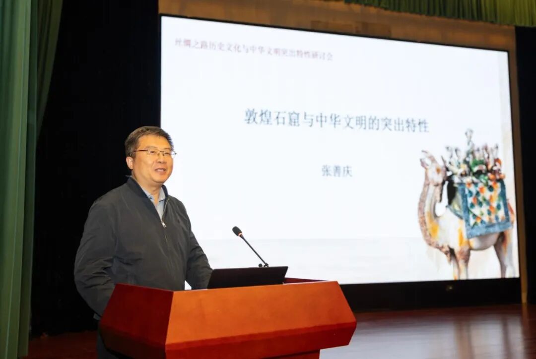 蘭州大學歷史文化學院院長張善慶談到,敦煌石窟是中華文明創新精神的優秀載體,石窟的藝術與信仰體系,是中華文明“多元一體”格局在西北邊陲的生動體現。敦煌在保留中華傳統文化特色的同時,汲取了外來文化的精髓,詮釋了“兼收并蓄、海納百川”的文化特性,是中華文明包容性的杰出見證。