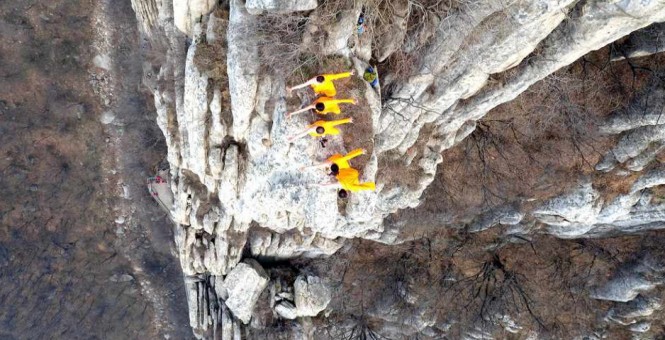 嵩山少林三皇寨絕壁驚現僧服練功者飛檐走壁