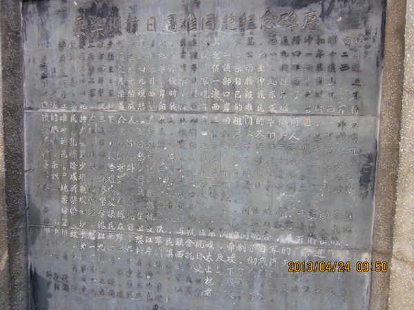 在我五六歲的時候,在一個深秋的下午,一隊鬼子兵從城里押解著一名20多歲的年輕人,他被五花大綁著出了城門,帶到我村東邊的三角灣的東崖頭,綁到電線桿上,十幾個鬼子兵列隊,從頭到尾,依次端著上了刺刀的步槍,向這個年輕人身上刺去。