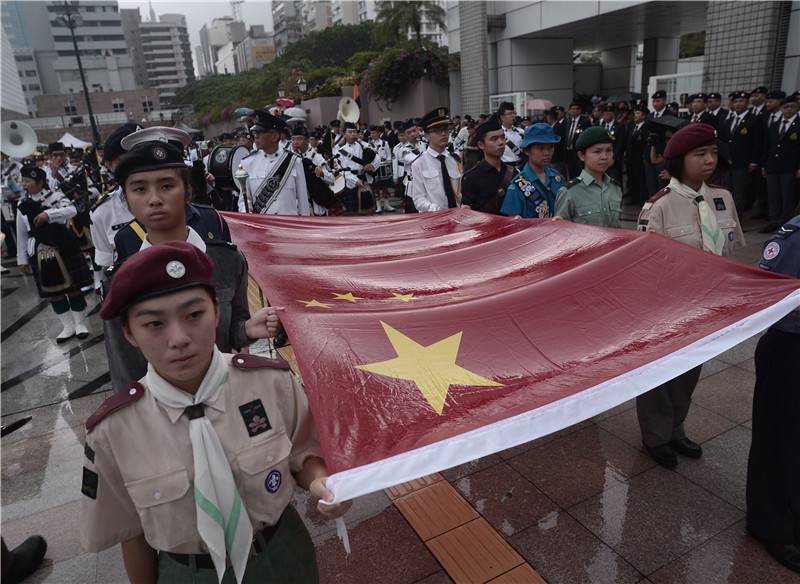 香港特區(qū)政府30日舉辦大型巡游活動,香港14隊(duì)青少年制服團(tuán)體聯(lián)同部分退伍軍人機(jī)構(gòu)約八百人無懼風(fēng)雨,于尖沙咀巡游近1小時(shí),吸引大批市民觀看。香港特區(qū)政府30日舉辦大型巡游活動,香港14隊(duì)青少年制服團(tuán)體聯(lián)同部分退伍軍人機(jī)構(gòu)約八百人無懼風(fēng)雨,于尖沙咀巡游近1小時(shí),吸引大批市民觀看。