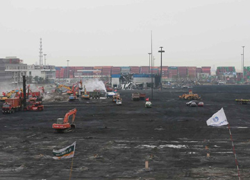 天津爆炸事故現(xiàn)場汽車和集裝箱清理基本完成