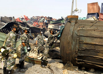 核生化救援隊進入天津爆炸核心區開展檢測工作