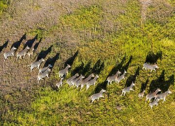 據英國《每日郵報》8月16日報道,英國攝影師彼得·亞當斯(Peter Adams)在博茨瓦納奧卡萬戈三角洲900米的高空航拍野生動物景象,畫面壯觀令人驚嘆。56歲的彼得乘坐魯濱孫R44直升機飛至奧卡萬戈三角洲900米高空,打開艙門以求獲得更廣闊的拍攝角度,俯拍三角洲上綺麗的自然景象。