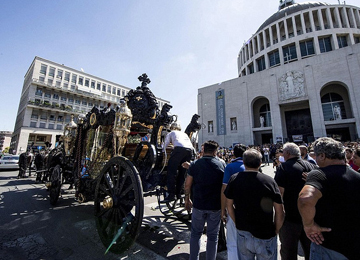 8月20日報道,意大利黑手黨大佬維托里奧·卡薩莫尼卡(Vittorio Casamonica)日前去世,終年65歲。當地時間19日,成百上千個羅馬市民涌上街頭參加了維托里奧有如好萊塢大片式的隆重葬禮,引起了一些政界人士的不滿和擔憂。羅馬市郊的一所教堂舉行黑手黨大佬維托里奧的葬禮。