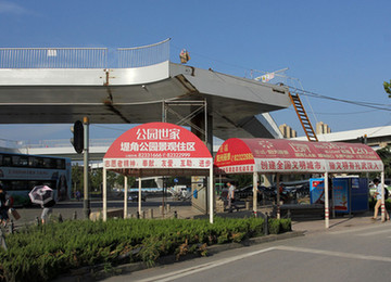 2015年8月22日,武漢,漢口新榮村客運站門前人行天橋遲遲未完工,做一半就放在那里,成“斷頭”橋影響出行。