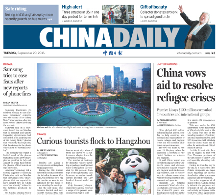 9月20日中國日報推薦:打擊恐怖主義需全球聯合應對