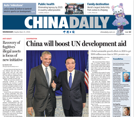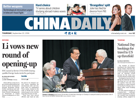 9月22日中國日報推薦:中國人民幣國際化再添新里程碑