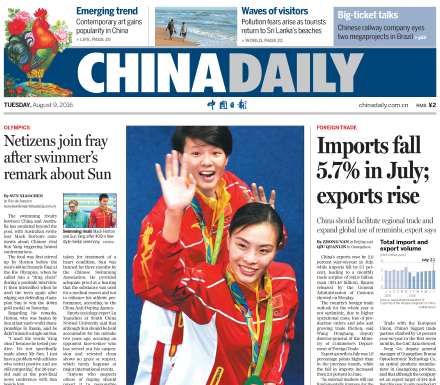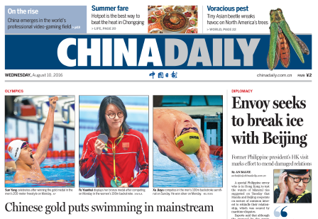 8月10日中國(guó)日?qǐng)?bào)推薦:中國(guó)游泳隊(duì)爆發(fā)“洪荒之力” 游泳成為中國(guó)優(yōu)勢(shì)項(xiàng)目