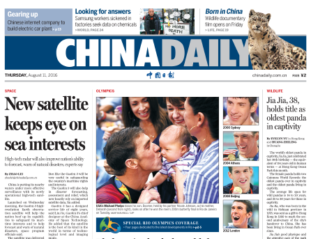8月11日中國(guó)日?qǐng)?bào)推薦:菲爾普斯又創(chuàng)奧運(yùn)佳績(jī)