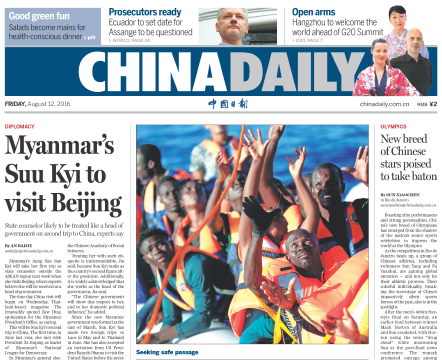 8月12日中國(guó)日?qǐng)?bào)推薦:昂山素季將訪問中國(guó)