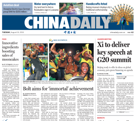 8月16日中國(guó)日?qǐng)?bào)推薦:習(xí)近平將在G20峰會(huì)上發(fā)表重要講話