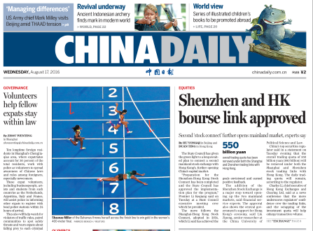 8月17日中國(guó)日?qǐng)?bào)推薦:深港通正式獲批