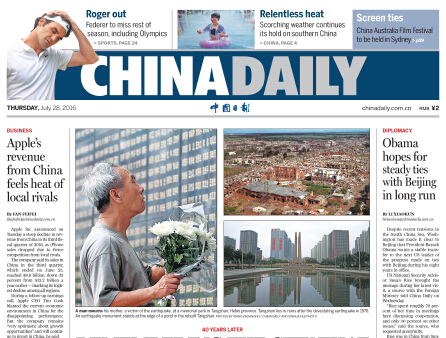 7月28日中國日報推薦:唐山大地震40周年:在毀滅中新生