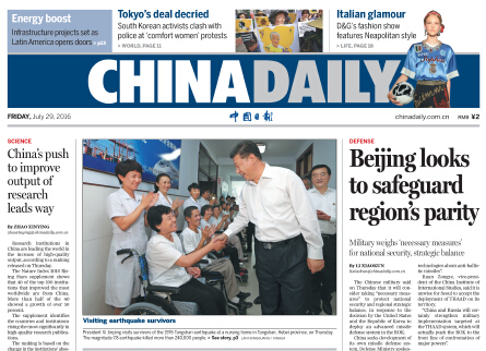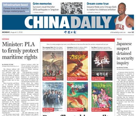 8月3日中國日報推薦:國防部強硬回應日防衛白皮書