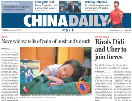 8月2日中國日報推薦:飛行員犧牲 妻子朋友圈寫下催淚長文