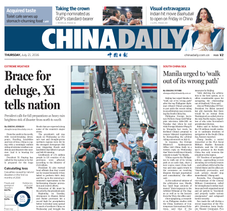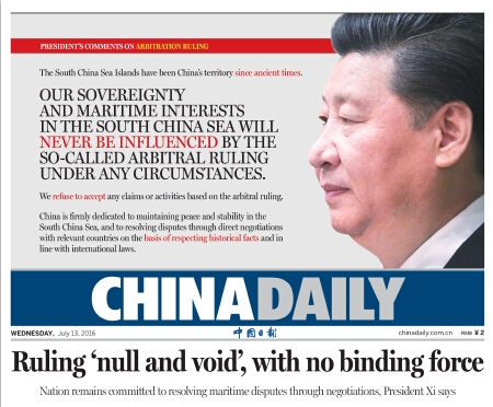 7月13日中國日報推薦:南海仲裁庭作出無效裁決 習近平發聲