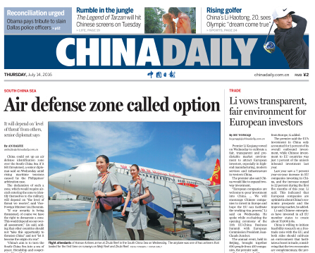 7月14日中國日報推薦:中國外交部副部長:南海防空識別區將視情況設立