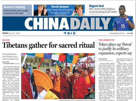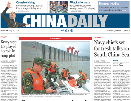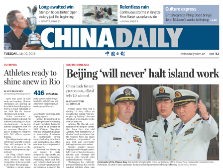 7月19日中國日報推薦:中國絕不會讓島礁建設半途而廢