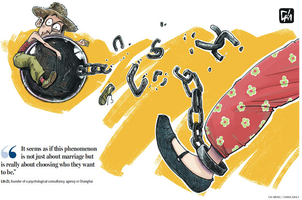 申請離婚的中國農村女性已達到前所未有的數量。多數情況下,她們婚姻破裂是在前往城市尋找工作之后,尋找工作的同時找到了愛情或者自我的力量。