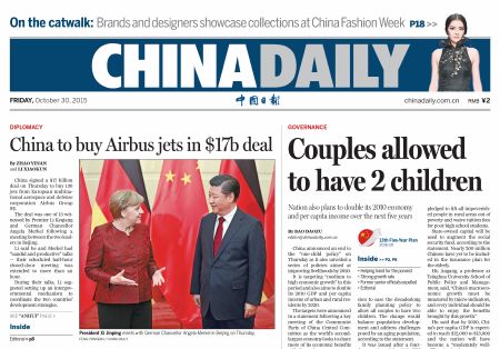 10月30日中國日報推薦:“十三·五”為中國發展鋪平道路
