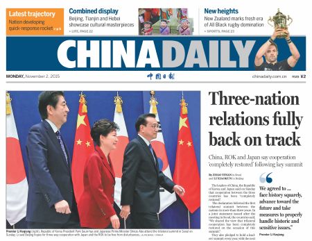 11月2日中國日報推薦:中日韓三國關系回到正確軌道
