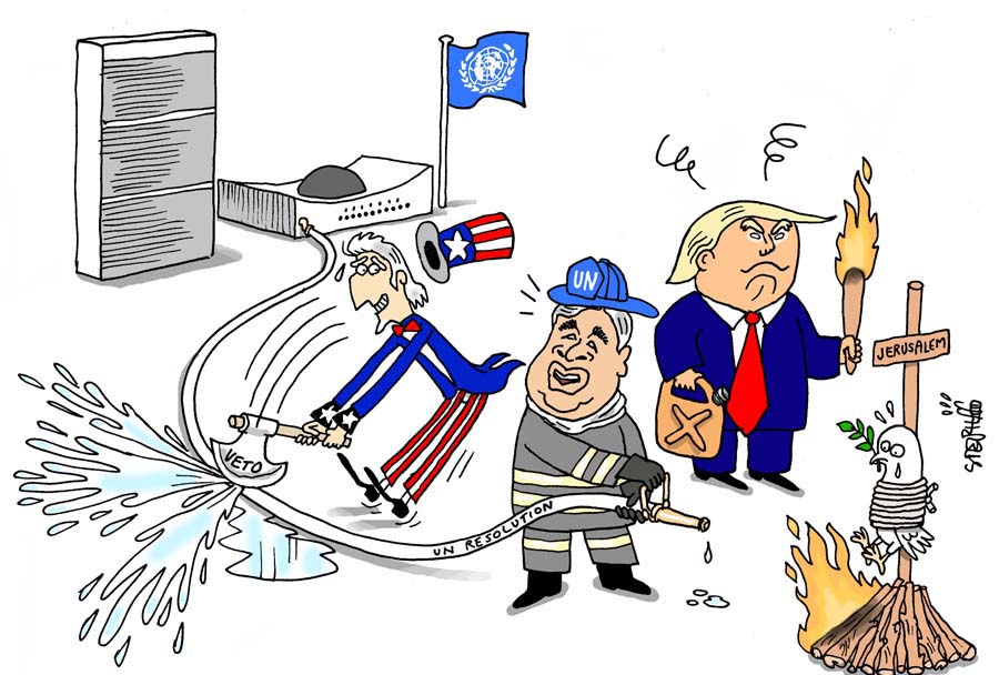 美國12月18日在聯合國安理會動用常任理事國的一票否決權,讓一份旨在推翻美承認耶路撒冷為以色列首都決定的決議草案胎死腹中。